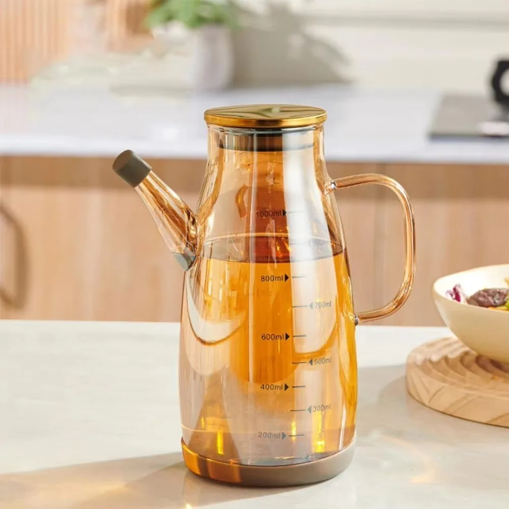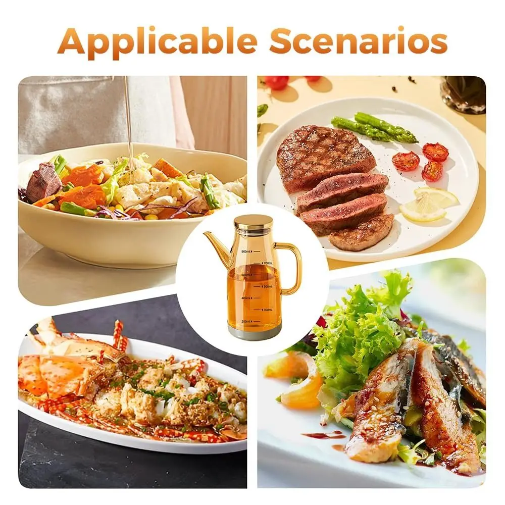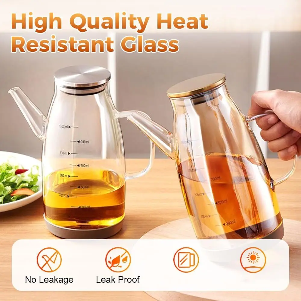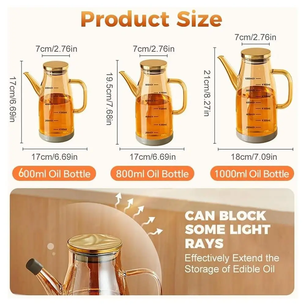 600/800/1000ML Glass Oil Dispenser Bottle with Drip Free Spout Large Capacity Leak-Proof Oil Storage Container for Kitchen Tools
